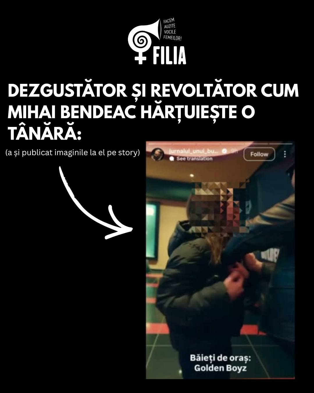 Mihai Bendeac a ieșit public cu o reacție extrem de fermă în urma acuzațiilor de hărțuire care au inundat rețelele sociale după o interacțiune virală cu o admiratoare, la premiera filmului „Băieți de oraș: Golden Boyz”. Actorul a anunțat că nu va lăsa aceste afirmații nesancționate și că, în cursul dimineții de 12 februarie, va depune plângere oficială la Poliție. Bendeac îi vizează direct pe cei care au interpretat gestul său într-o cheie sexuală, numind explicit Centrul Filia, bloggerul Zoso și un alt influencer de pe YouTube, pe care îi acuză că au transformat un moment de simpatie și umor într-un caz de agresiune, supunând totodată tânăra unui proces nedrept de „public shaming”.