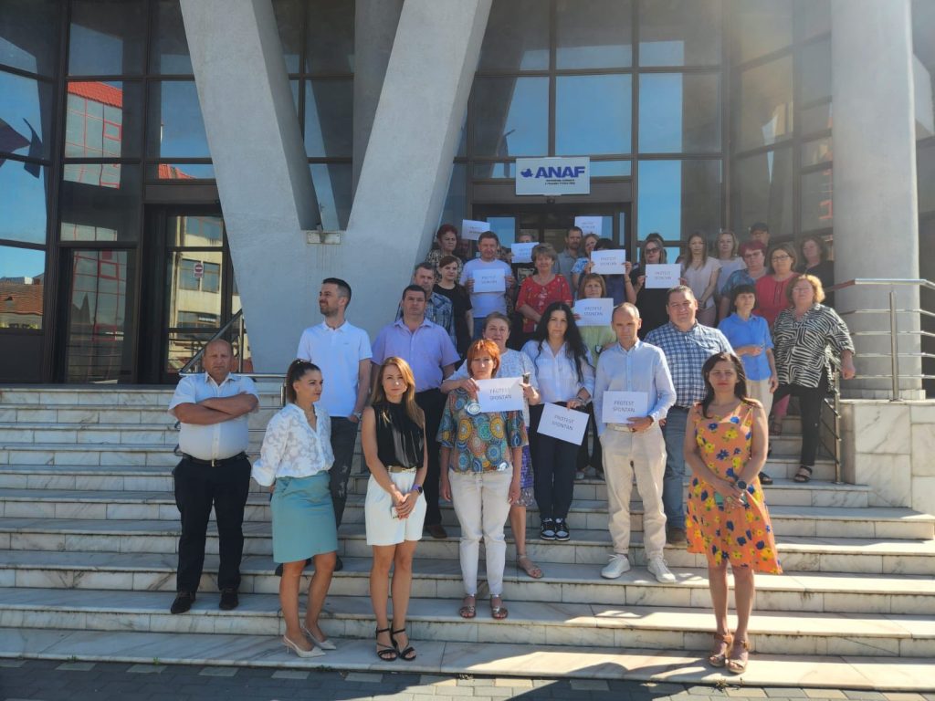 Salariații din Ministerul Finanțelor, ANAF, Antifraudă și unitățile subordonate continuă protestele și amenință că vor opri complet activitatea. Proteste sunt și la Trezorerie și sunt așteptate astăzi în mai multe instituții din întreaga țară, informează Federația Națională a Sindicatelor din Finanțe. Reprezentanții angajaților spun că sunt hotărâți să protesteze oricât va fi nevoie, chiar să oprească activitatea.